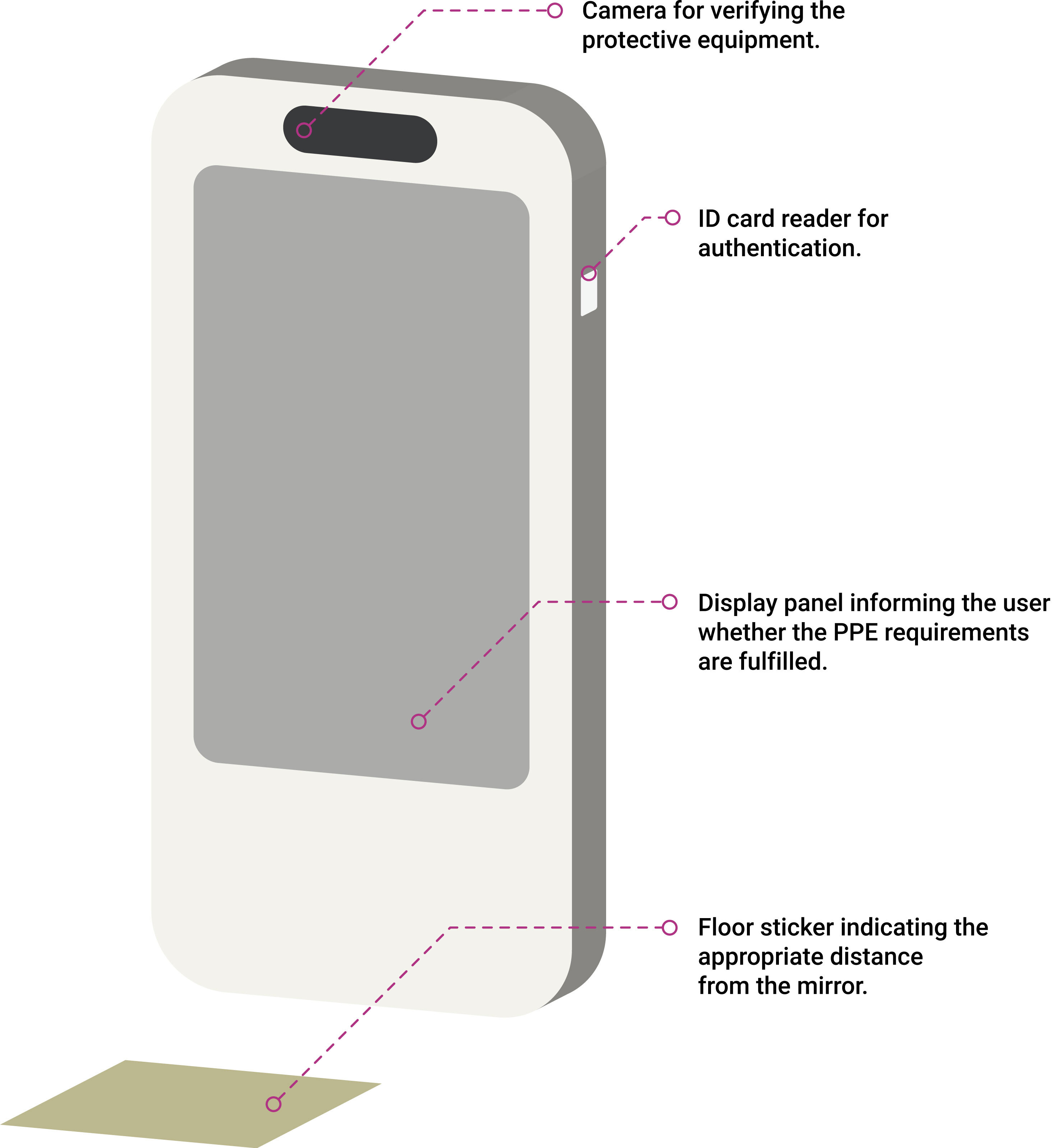 FORXAI Mirror is an access control solution that ensures proper Personal Protective Equipment (PPE) usage among workers. With its machine learning-powered camera and user-friendly interface, FORXAI Mirror facilitates real-time monitoring and feedback, promoting adherence to safety protocols with efficiency and accuracy.